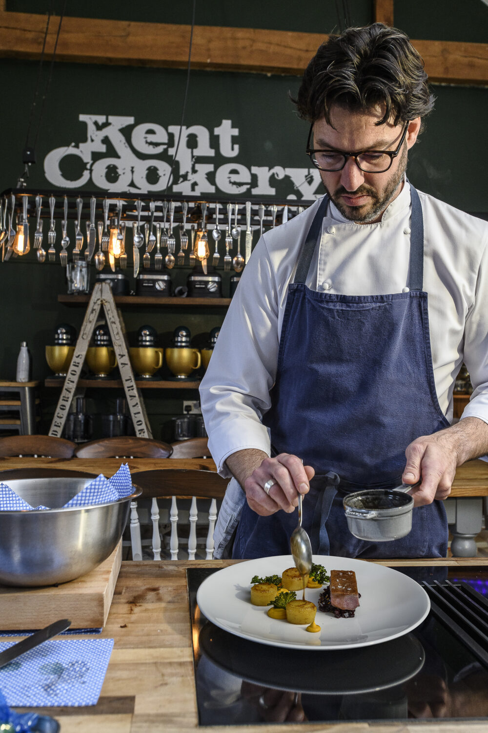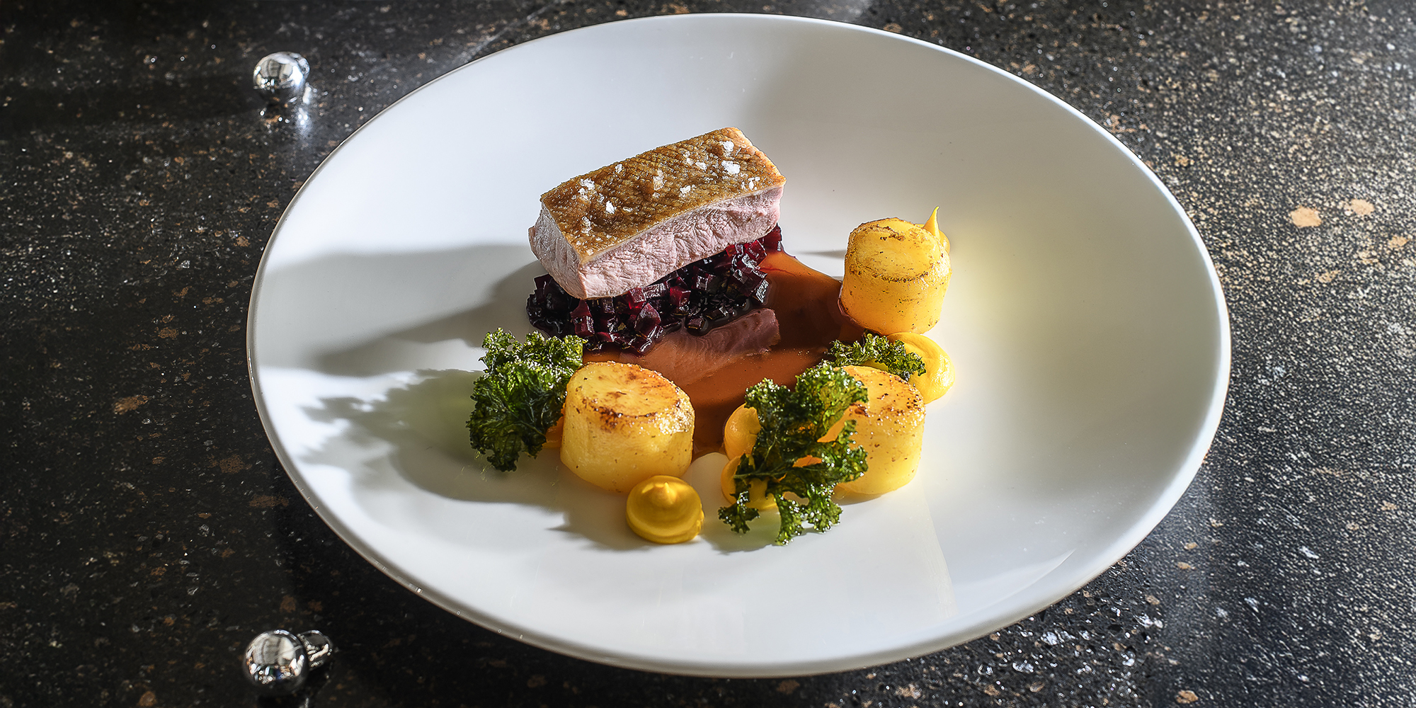 For the duck breast: For the fennel powder: For the beetroot relish: For the crispy kale: For the fondant potatoes: For the carrot & brown butter purée: To serve: Professional Chef James Palmer Rosser has worked across the South East for a number of prestigious and Michelin starred eateries. He now heads up Kent Cookery School, where he shares his creative approach to food with cookery courses taught in a relaxed, informal setting where people of all abilities can come and learn, eat and make some great memories. Find out more about the mouth-watering and comprehensive selection of cookery courses and classes run at Kent Cookery School, from Thai Street Food to Macaron Masterclasses, at kentcookeryschool.co.uk