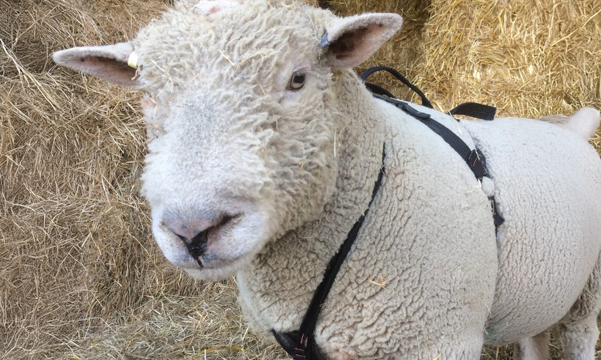 Before a ram is introduced, he’s fitted with a harness, a raddle, that holds a coloured wax crayon between his front legs which leaves a big mark on the ewe’s rump when she’s been serviced. Once he’s suited and booted we’re ready to go. Signs that a ewe is in season include tail wagging, restlessness and she’ll actively seek out a ram and stand still for him to mount her. For his part he mainly relies on a sense of smell. On the roof of his mouth is a special organ and following a good sniff he’ll curl his upper lip to create a flow of air over it so he can accurately assess whether she’s in “standing” heat. This is called the Flehman effect.